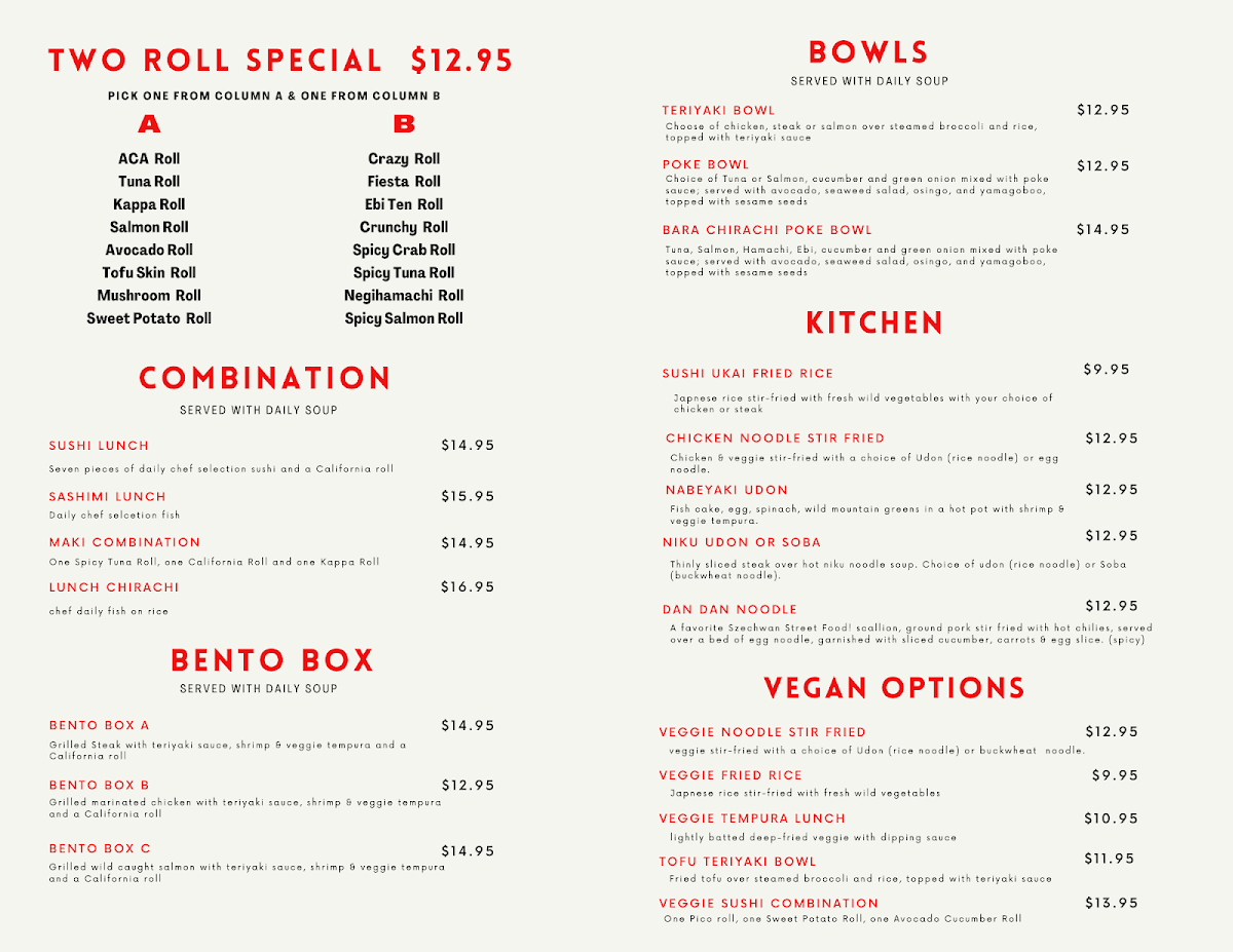 Whether you opt for a comforting soup, adventurous sushi rolls, or a robust sake to accompany your meal, Sushi Ukai promises a memorable dining experience that keeps patrons coming back. Join the community of satisfied customers who appreciate this delightful culinary destination!